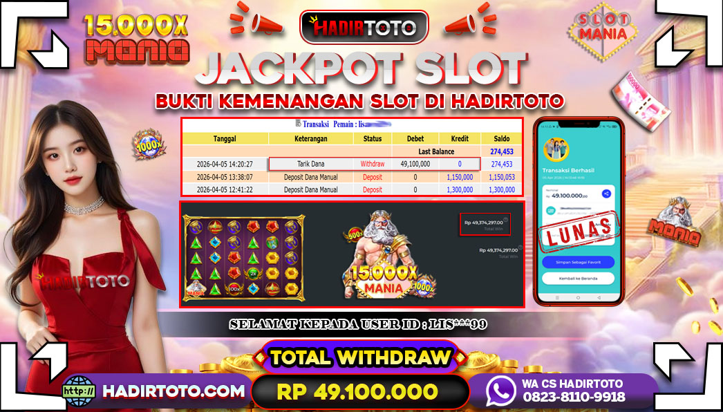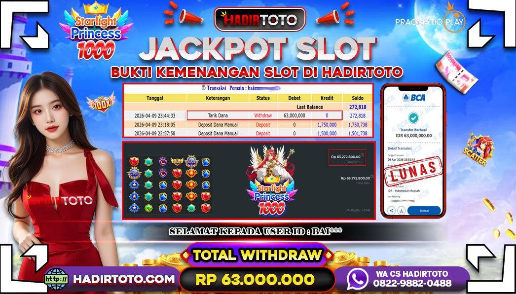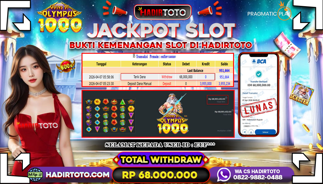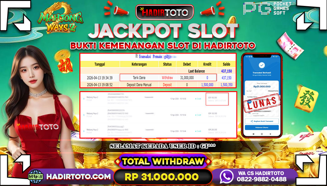 Selamat Kepada Member 𓆩♕𓆪 HADIRTOTO 𓆩♕𓆪 Yang Telah Berhasil Meraih Kemenangan dengan ID : GI*** di permainan SLOT Mahjong Ways 2 dengan kemenengan sebesar Rp.31.000.000 , Setelah mengisi formulir withdraw dengan kurung waktu hanya 5 – 10 menit pihak hadirtoto sudah melakukan transfer kepada pemilik Userid dan dana sudah dapat di cairkan oleh pemenang. Bukti pembayaran yang kami berikan merupakan bukti pembayaran yang SAH / VALID yang langung di dapatkan melalui tanda transfer transaksi dari Bank yang di tuju. Kami mengucapakan banyak Terima Kasih Kepada pemenang karena sudah mempercayakan kami sebagai Bandar Tepercaya yang membayar semua kemenangan member hingga lunas. Masih ragu dengan hadirtoto kak ? Di mana bandar togel online sekarang yang terpercaya seperti hadirtoto? Bandar yang mengirimkan kemenangan member tanpa bertele – tele. Jadi…. tidak perlu khawatir pada situs hadirtoto karena kemenangan anda berapapun akan dibayarakan hingga lunas kepada pemenang.