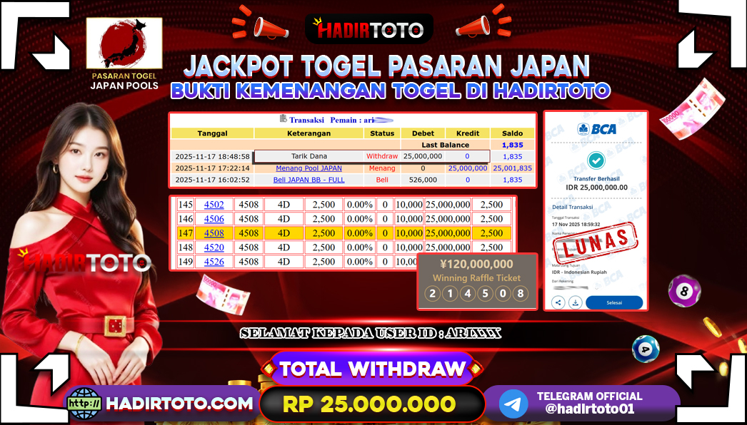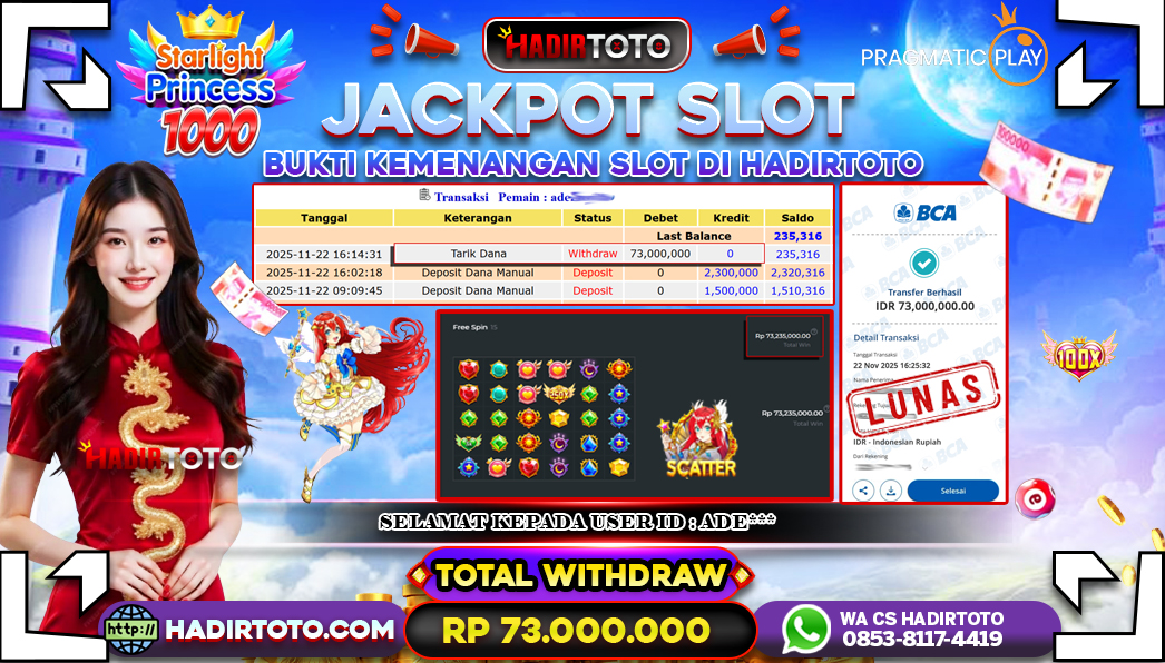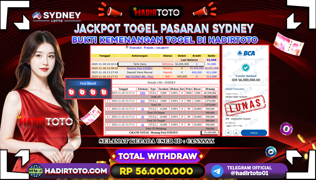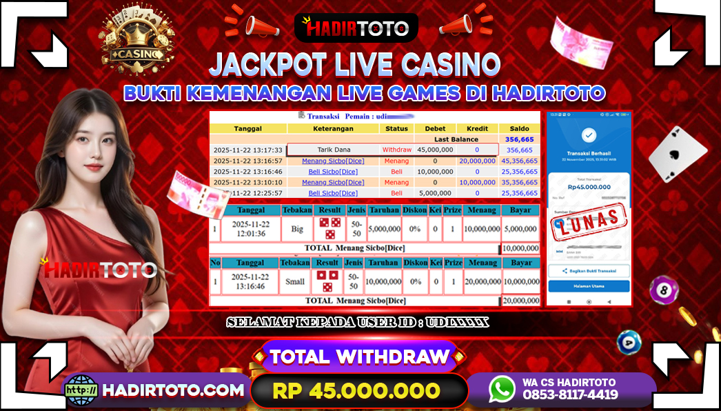 Selamat Kepada Member 𓆩♕𓆪 HADIRTOTO 𓆩♕𓆪 Yang Telah Berhasil Meraih Kemenangan dengan ID : UDI*** di permainan Live Games SICBO DICE dengan kemenangan sebesar Rp.45.000.000 , Setelah mengisi formulir withdraw dengan kurung waktu hanya 5 – 10 menit pihak hadirtoto sudah melakukan transfer kepada pemilik Userid dan dana sudah dapat di cairkan oleh pemenang. Bukti pembayaran yang kami berikan merupakan bukti pembayaran yang SAH / VALID yang langung di dapatkan melalui tanda transfer transaksi dari Bank yang di tuju. Kami mengucapakan banyak Terima Kasih Kepada pemenang karena sudah mempercayakan kami sebagai Bandar Tepercaya yang membayar semua kemenangan member hingga lunas. Masih ragu dengan hadirtoto kak ? Di mana bandar togel online sekarang yang terpercaya seperti hadirtoto? Bandar yang mengirimkan kemenangan member tanpa bertele – tele. Jadi…. tidak perlu khawatir pada situs hadirtoto karena kemenangan anda berapapun akan dibayarakan hingga lunas kepada pemenang.