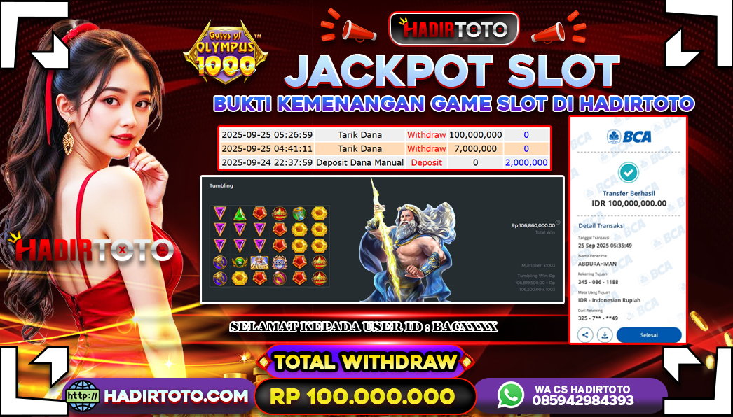Selamat Kepada Member 𓆩♕𓆪 HADIRTOTO 𓆩♕𓆪 Yang Telah Berhasil Meraih Kemenangan dengan ID : BAC**** di permainan SLOT Gates Of Olympus 1000 dengan kemenengan sebesar Rp.100.000.000 , Setelah mengisi formulir withdraw dengan kurung waktu hanya 5 – 10 menit pihak hadirtoto sudah melakukan transfer kepada pemilik Userid dan dana sudah dapat di cairkan oleh pemenang. Bukti pembayaran yang kami berikan merupakan bukti pembayaran yang SAH / VALID yang langung di dapatkan melalui tanda transfer transaksi dari Bank yang di tuju. Kami mengucapakan banyak Terima Kasih Kepada pemenang karena sudah mempercayakan kami sebagai Bandar Tepercaya yang membayar semua kemenangan member hingga lunas. Masih ragu dengan hadirtoto kak ? Di mana bandar togel online sekarang yang terpercaya seperti hadirtoto? Bandar yang mengirimkan kemenangan member tanpa bertele – tele. Jadi…. tidak perlu khwatir pada situs hadirtoto karena kemenangan anda berapapun akan dibayarakan hingga lunas kepada pemenang.