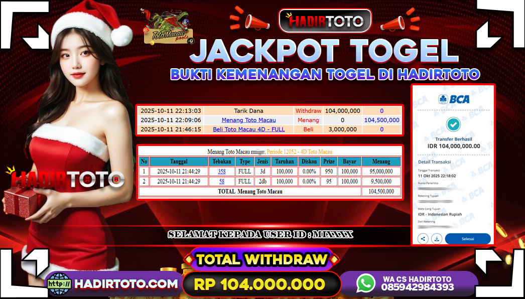 ꧁༒☬👑HADIRTOTO👑☬༒꧂ Jackpot 🐋 TOGEL Toto Macau ~ RP.104.000.000.,- LUNAS