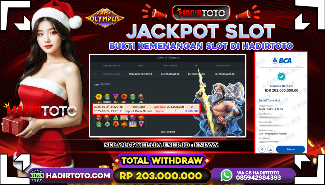 ꧁༒☬👑HADIRTOTO👑☬༒꧂ Jackpot 🐋 SLOT GATES OF OLYMPUS ~ RP.203.000.000.,- LUNAS