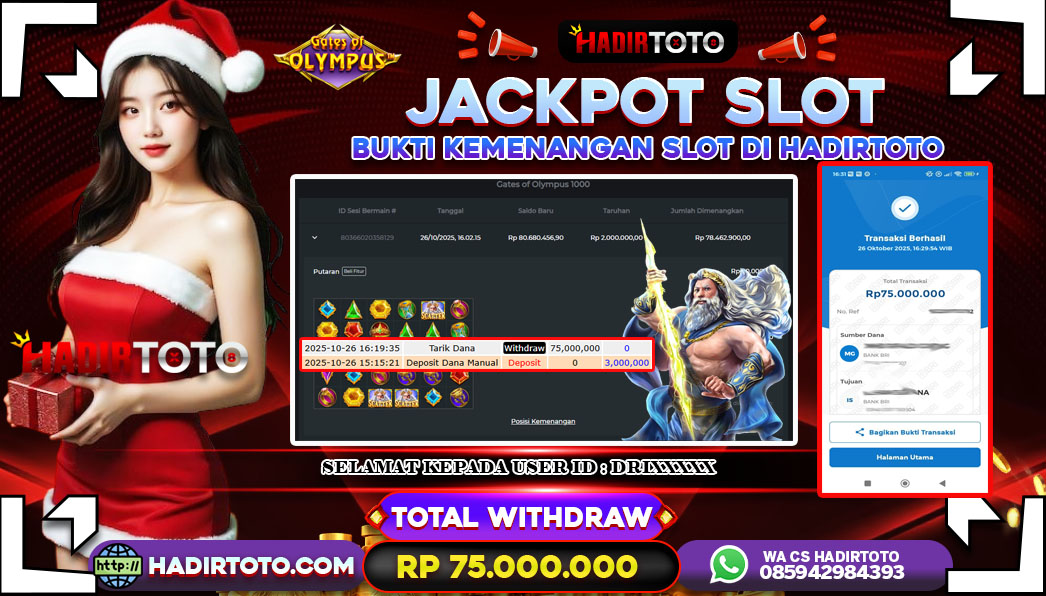 ꧁༒☬👑HADIRTOTO👑☬༒꧂ Jackpot 🐋 SLOT GATES OF OLYMPUS ~ RP.75.000.000.,- LUNAS