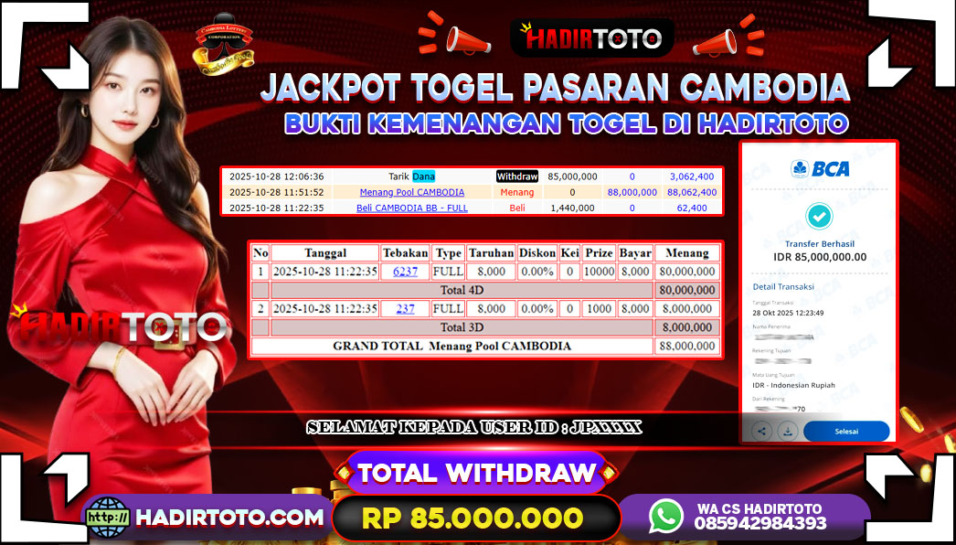 ꧁༒☬👑HADIRTOTO👑☬༒꧂ Jackpot 🐋 TOGEL CAMBODIA ~ RP.85.000.000.,- LUNAS