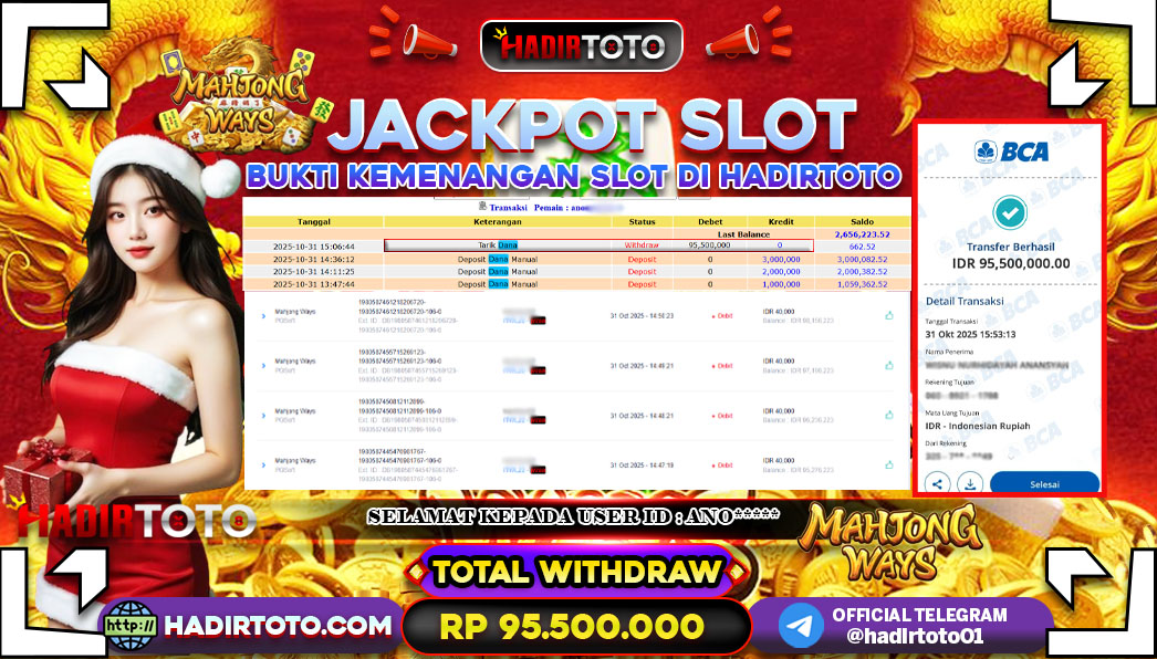 ꧁༒☬👑HADIRTOTO👑☬༒꧂ Jackpot 🀄 MAHJONG WAYS ~ RP.95.000.000.,- LUNAS