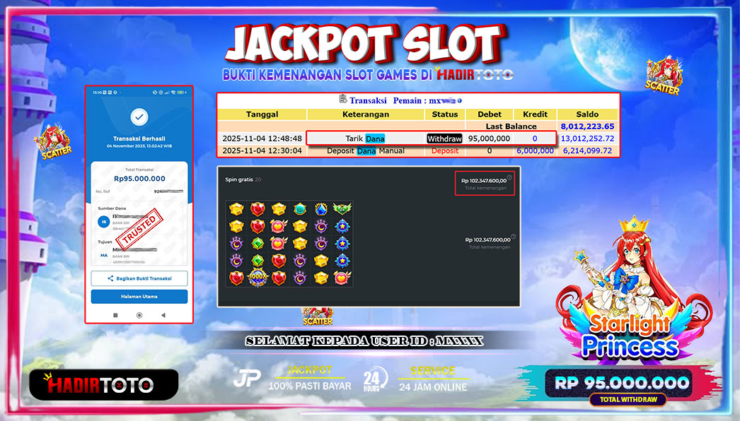 ꧁༒☬👑HADIRTOTO👑☬༒꧂ Jackpot 🐋 SLOT STARLIGHT PRINCESS 1000 ~ RP.95.000.000.,- LUNAS