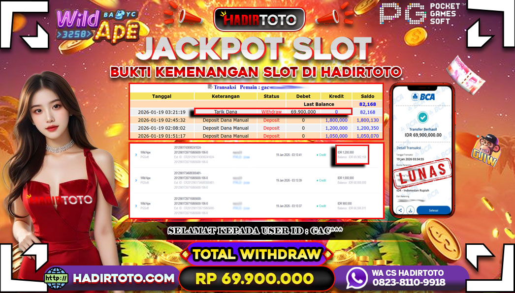 Selamat Kepada Member 𓆩♕𓆪 HADIRTOTO 𓆩♕𓆪 Yang Telah Berhasil Meraih Kemenangan dengan ID : GAC*** di permainan SLOT Wild Ape dengan kemenengan sebesar Rp.69.900.000 , Setelah mengisi formulir withdraw dengan kurung waktu hanya 5 – 10 menit pihak hadirtoto sudah melakukan transfer kepada pemilik Userid dan dana sudah dapat di cairkan oleh pemenang. Bukti pembayaran yang kami berikan merupakan bukti pembayaran yang SAH / VALID yang langung di dapatkan melalui tanda transfer transaksi dari Bank yang di tuju. Kami mengucapakan banyak Terima Kasih Kepada pemenang karena sudah mempercayakan kami sebagai Bandar Tepercaya yang membayar semua kemenangan member hingga lunas. Masih ragu dengan hadirtoto kak ? Di mana bandar togel online sekarang yang terpercaya seperti hadirtoto? Bandar yang mengirimkan kemenangan member tanpa bertele – tele. Jadi…. tidak perlu khwatir pada situs hadirtoto karena kemenangan anda berapapun akan dibayarakan hingga lunas kepada pemenang.
