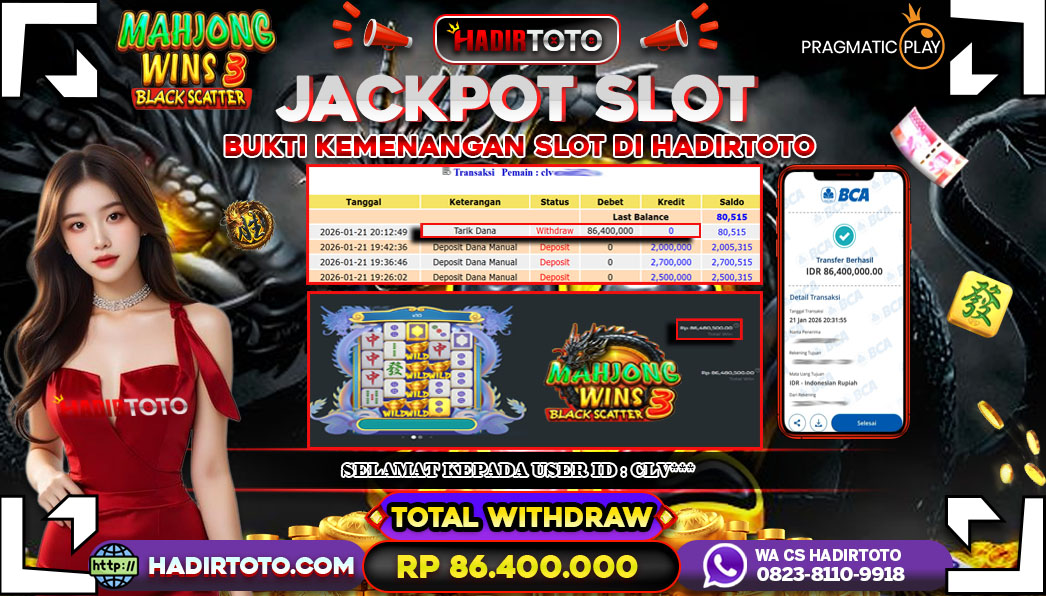꧁༒☬👑HADIRTOTO👑☬༒꧂ Jackpot 🐋 SLOT MAHJONG WINS 3 - BLACK SCATTER ~ RP.86.400.000.,- LUNAS