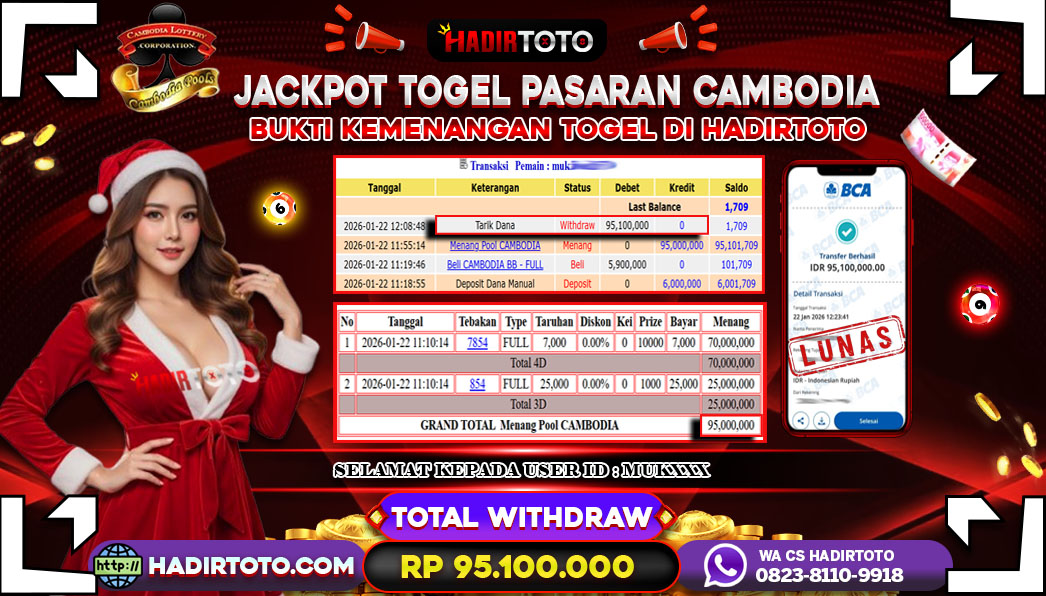 ꧁༒☬👑HADIRTOTO👑☬༒꧂ Jackpot 🐋 TOGEL PASARAN CAMBODIA ~ RP.95.100.000.,- LUNAS
