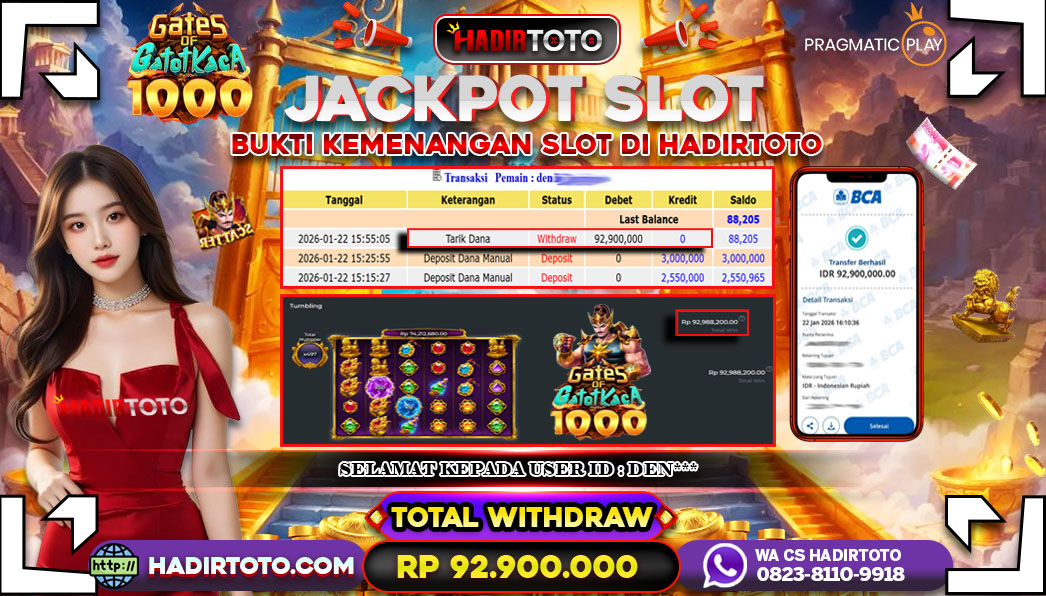 ꧁༒☬👑HADIRTOTO👑☬༒꧂ Jackpot 🐋 SLOT GATES OF GATOTKACA 1000 ~ RP.92.900.000.,- LUNAS