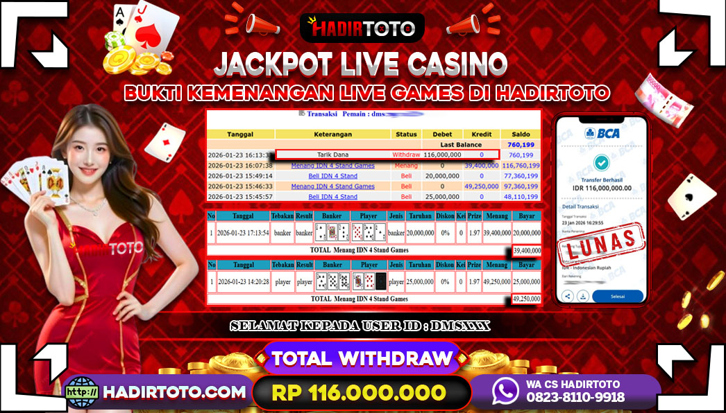 ꧁༒☬👑HADIRTOTO👑☬༒꧂ Jackpot 🐋 LIVE GAMES IDN 4 STAND ~ RP.116.000.000.,- LUNAS