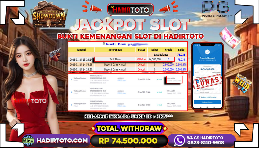Selamat Kepada Member 𓆩♕𓆪 HADIRTOTO 𓆩♕𓆪 Yang Telah Berhasil Meraih Kemenangan dengan ID : GEN*** di permainan SLOT Wild Bounty Showdown dengan kemenengan sebesar Rp.74.500.000 , Setelah mengisi formulir withdraw dengan kurung waktu hanya 5 – 10 menit pihak hadirtoto sudah melakukan transfer kepada pemilik Userid dan dana sudah dapat di cairkan oleh pemenang. Bukti pembayaran yang kami berikan merupakan bukti pembayaran yang SAH / VALID yang langung di dapatkan melalui tanda transfer transaksi dari Bank yang di tuju. Kami mengucapakan banyak Terima Kasih Kepada pemenang karena sudah mempercayakan kami sebagai Bandar Tepercaya yang membayar semua kemenangan member hingga lunas. Masih ragu dengan hadirtoto kak ? Di mana bandar togel online sekarang yang terpercaya seperti hadirtoto? Bandar yang mengirimkan kemenangan member tanpa bertele – tele. Jadi…. tidak perlu khawatir pada situs hadirtoto karena kemenangan anda berapapun akan dibayarakan hingga lunas kepada pemenang.