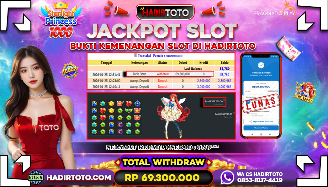 Selamat Kepada Member 𓆩♕𓆪 HADIRTOTO 𓆩♕𓆪 Yang Telah Berhasil Meraih Kemenangan dengan ID : ONO*** di permainan SLOT Starlight Princess 1000 dengan kemenengan sebesar Rp.69.300.000 , Setelah mengisi formulir withdraw dengan kurung waktu hanya 5 – 10 menit pihak hadirtoto sudah melakukan transfer kepada pemilik Userid dan dana sudah dapat di cairkan oleh pemenang. Bukti pembayaran yang kami berikan merupakan bukti pembayaran yang SAH / VALID yang langung di dapatkan melalui tanda transfer transaksi dari Bank yang di tuju. Kami mengucapakan banyak Terima Kasih Kepada pemenang karena sudah mempercayakan kami sebagai Bandar Tepercaya yang membayar semua kemenangan member hingga lunas. Masih ragu dengan hadirtoto kak ? Di mana bandar togel online sekarang yang terpercaya seperti hadirtoto? Bandar yang mengirimkan kemenangan member tanpa bertele – tele. Jadi…. tidak perlu khawatir pada situs hadirtoto karena kemenangan anda berapapun akan dibayarakan hingga lunas kepada pemenang.