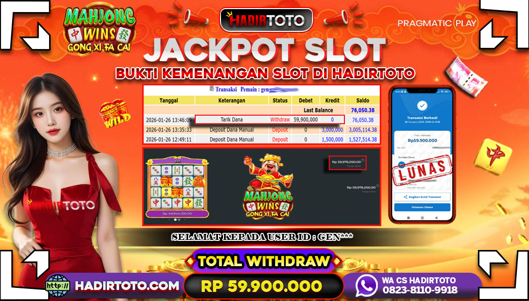 ꧁༒☬👑HADIRTOTO👑☬༒꧂ Jackpot 🀄 MAHJONG WIND - GONG XI FA CAI ~ RP.59.900.000.,- LUNAS