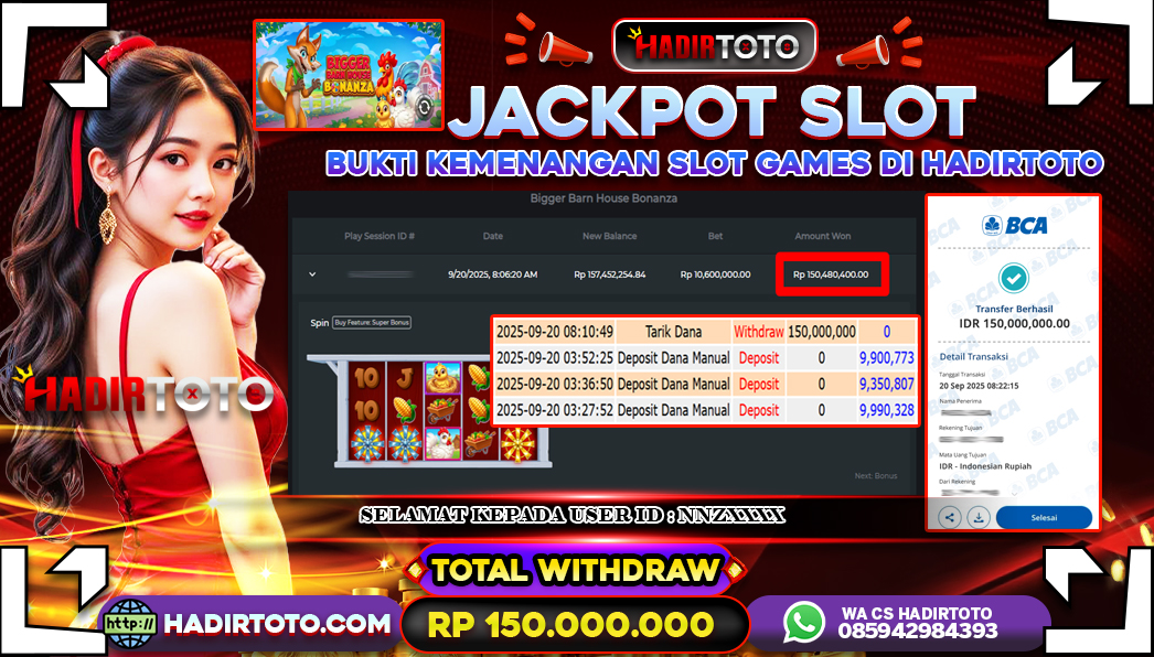 Selamat Kepada Member 𓆩♕𓆪 HADIRTOTO 𓆩♕𓆪 Yang Telah Berhasil Meraih Kemenangan dengan ID : NNZ**** di permainan SLOT Bigger Barn House Bonanza dengan kemenengan sebesar Rp.150.000.000 , Setelah mengisi formulir withdraw dengan kurung waktu hanya 5 – 10 menit pihak hadirtoto sudah melakukan transfer kepada pemilik Userid dan dana sudah dapat di cairkan oleh pemenang. Bukti pembayaran yang kami berikan merupakan bukti pembayaran yang SAH / VALID yang langung di dapatkan melalui tanda transfer transaksi dari Bank yang di tuju. Kami mengucapakan banyak Terima Kasih Kepada pemenang karena sudah mempercayakan kami sebagai Bandar Tepercaya yang membayar semua kemenangan member hingga lunas. Masih ragu dengan hadirtoto kak ? Di mana bandar togel online sekarang yang terpercaya seperti hadirtoto? Bandar yang mengirimkan kemenangan member tanpa bertele – tele. Jadi…. tidak perlu khwatir pada situs hadirtoto karena kemenangan anda berapapun akan dibayarakan hingga lunas kepada pemenang.