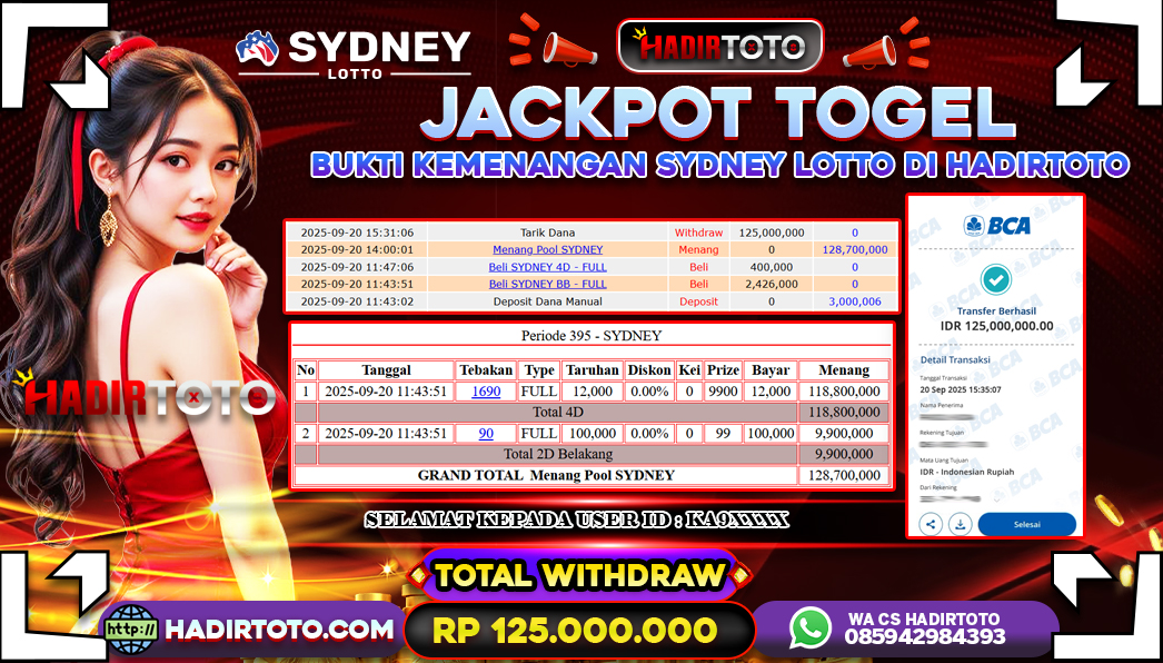 ꧁༒☬👑HADIRTOTO👑☬༒꧂ Jackpot 🐋 TOGEL Sydney Lotto ~ RP.125.000.000.,- LUNAS
