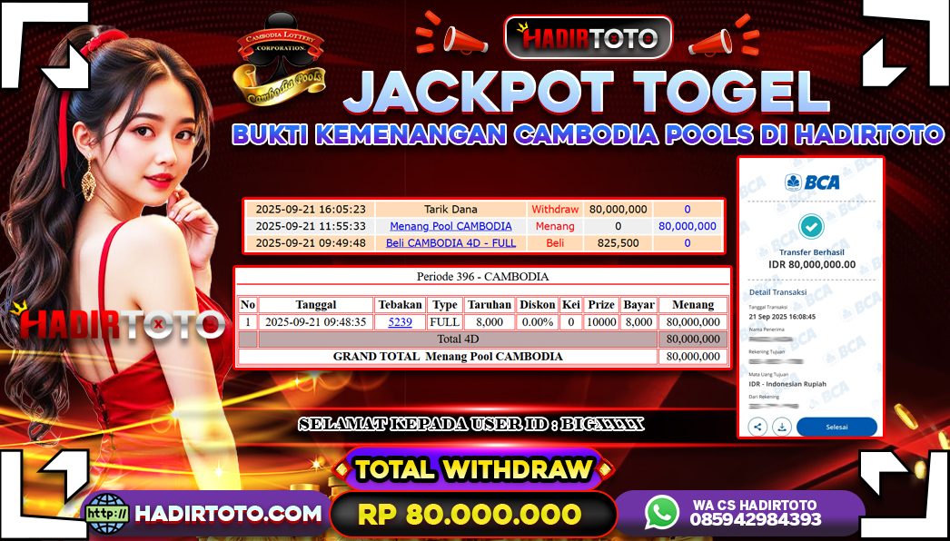 ꧁༒☬👑HADIRTOTO👑☬༒꧂ Jackpot 🐋 TOGEL Cambodia Pools ~ RP.80.000.000.,- LUNAS