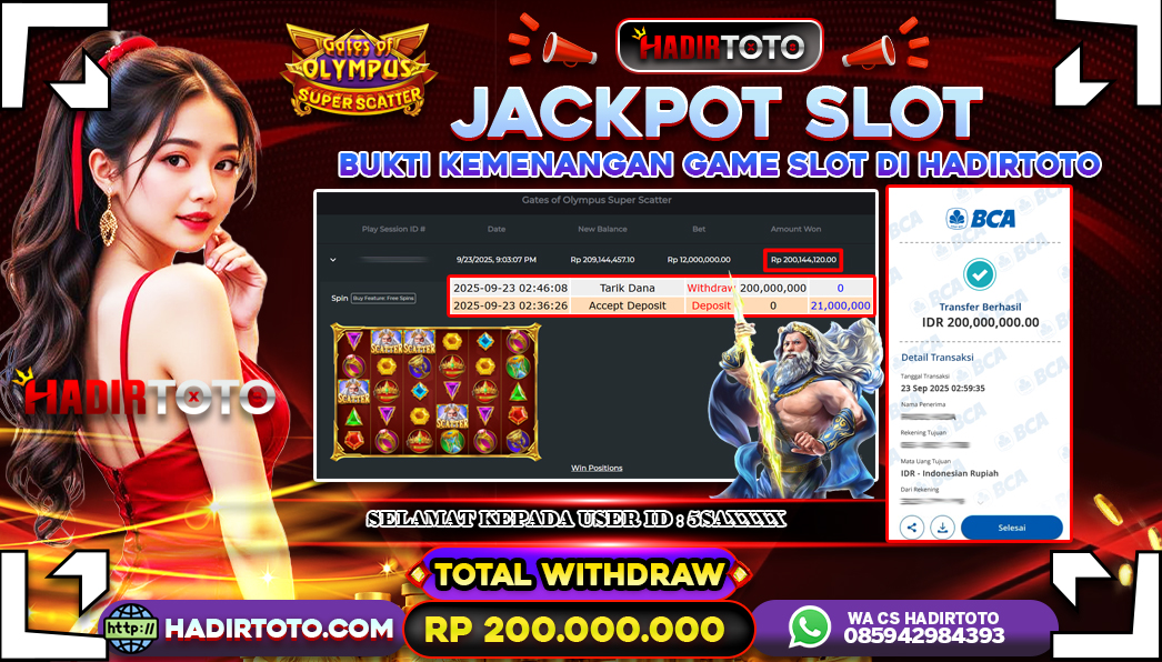 Selamat Kepada Member 𓆩♕𓆪 HADIRTOTO 𓆩♕𓆪 Yang Telah Berhasil Meraih Kemenangan dengan ID : 5SA**** di permainan SLOT Gates of Olympus Super Scatter dengan kemenengan sebesar Rp.200.000.000 , Setelah mengisi formulir withdraw dengan kurung waktu hanya 5 – 10 menit pihak hadirtoto sudah melakukan transfer kepada pemilik Userid dan dana sudah dapat di cairkan oleh pemenang. Bukti pembayaran yang kami berikan merupakan bukti pembayaran yang SAH / VALID yang langung di dapatkan melalui tanda transfer transaksi dari Bank yang di tuju. Kami mengucapakan banyak Terima Kasih Kepada pemenang karena sudah mempercayakan kami sebagai Bandar Tepercaya yang membayar semua kemenangan member hingga lunas. Masih ragu dengan hadirtoto kak ? Di mana bandar togel online sekarang yang terpercaya seperti hadirtoto? Bandar yang mengirimkan kemenangan member tanpa bertele – tele. Jadi…. tidak perlu khwatir pada situs hadirtoto karena kemenangan anda berapapun akan dibayarakan hingga lunas kepada pemenang.