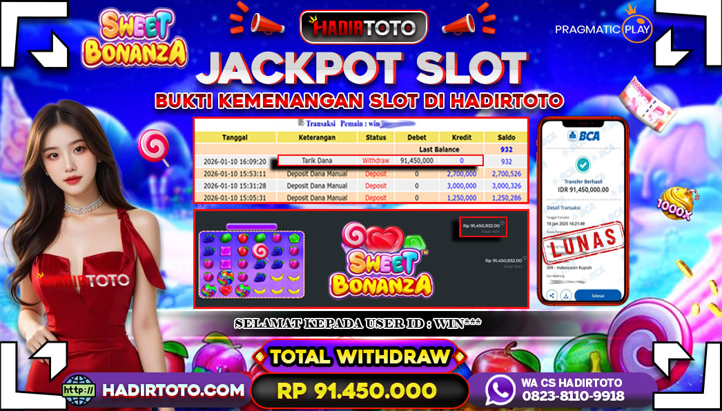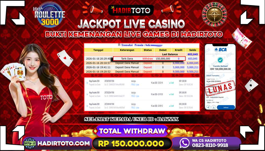 Selamat Kepada Member 𓆩♕𓆪 HADIRTOTO 𓆩♕𓆪 Yang Telah Berhasil Meraih Kemenangan dengan ID : ADI*** di permainan LIVE GAMES Baccarat dengan kemenengan sebesar Rp.148.000.000 , Setelah mengisi formulir withdraw dengan kurung waktu hanya 5 – 10 menit pihak hadirtoto sudah melakukan transfer kepada pemilik Userid dan dana sudah dapat di cairkan oleh pemenang. Bukti pembayaran yang kami berikan merupakan bukti pembayaran yang SAH / VALID yang langung di dapatkan melalui tanda transfer transaksi dari Bank yang di tuju. Kami mengucapakan banyak Terima Kasih Kepada pemenang karena sudah mempercayakan kami sebagai Bandar Tepercaya yang membayar semua kemenangan member hingga lunas. Masih ragu dengan hadirtoto kak ? Di mana bandar togel online sekarang yang terpercaya seperti hadirtoto? Bandar yang mengirimkan kemenangan member tanpa bertele – tele. Jadi…. tidak perlu khwatir pada situs hadirtoto karena kemenangan anda berapapun akan dibayarakan hingga lunas kepada pemenang.